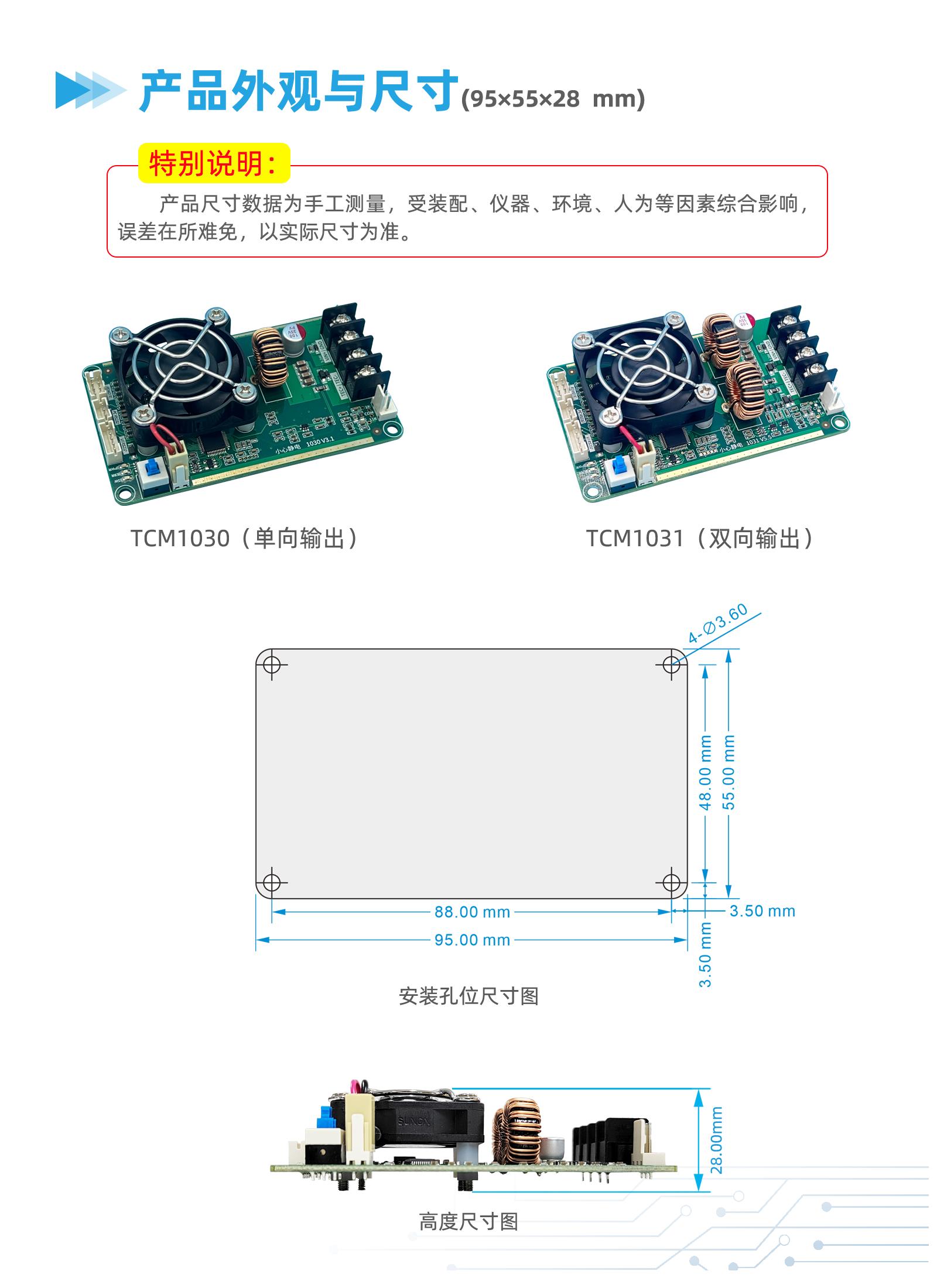 基础版温控模块数据手册,包含TCM1030、TCM1031模块型号。