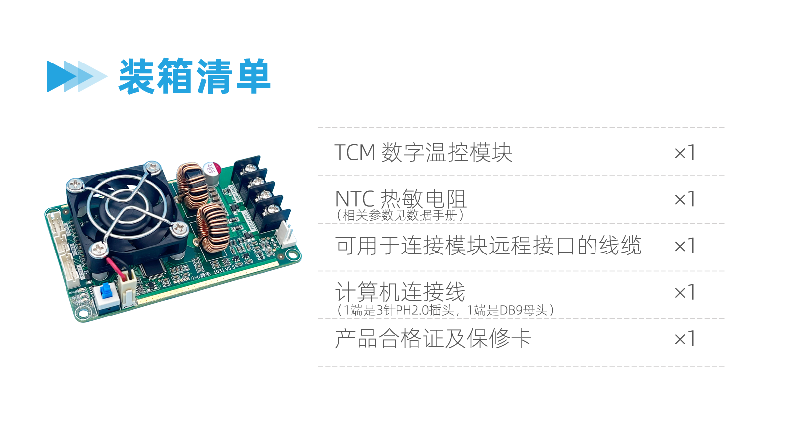 - 制冷、加热和双向三种输出模式可选。单向温控模块只能选择单向制冷或加热。