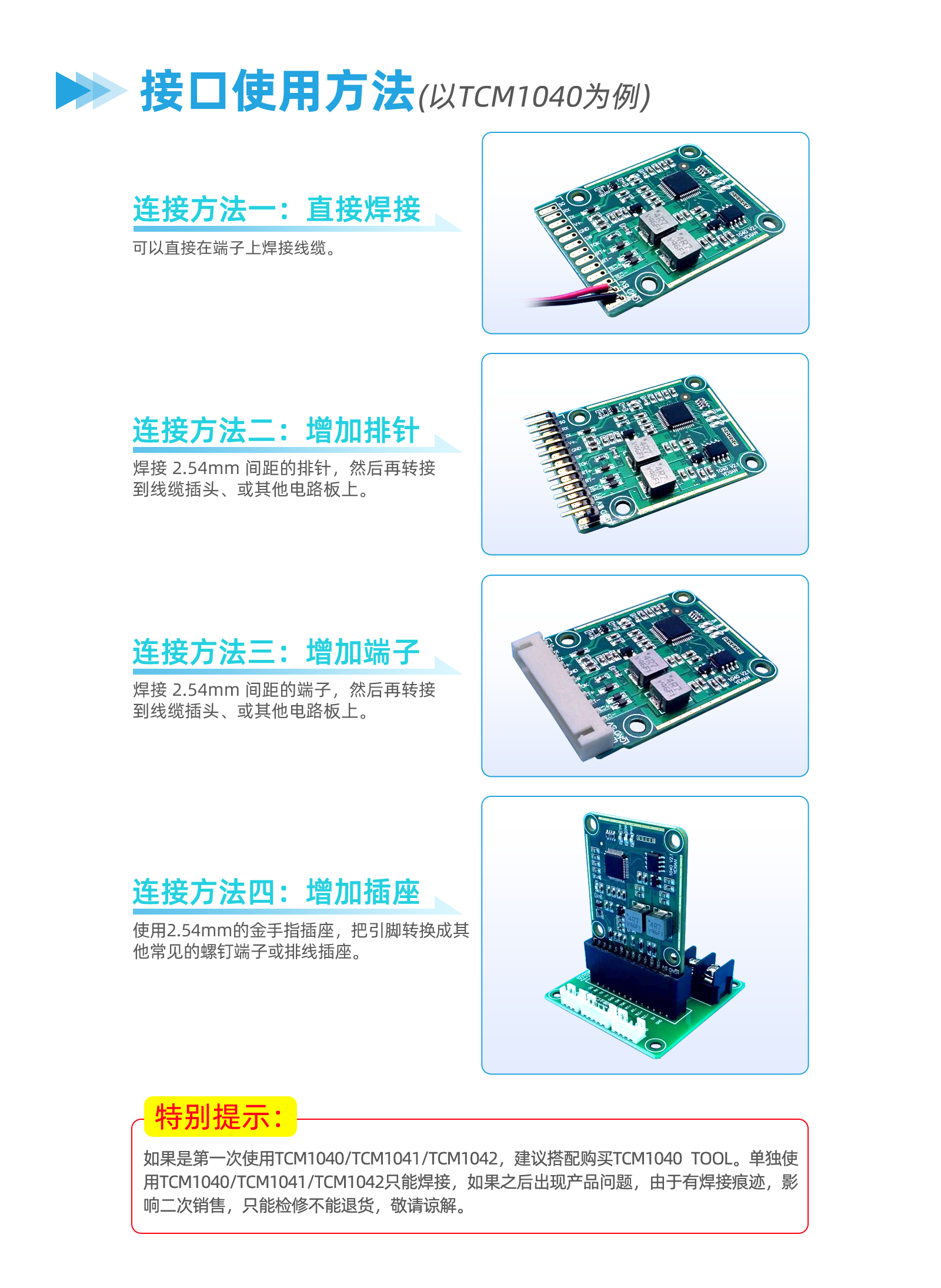 小型版温控模块数据手册,包含TCM1040、TCM1041、TCM1042等模块型号。