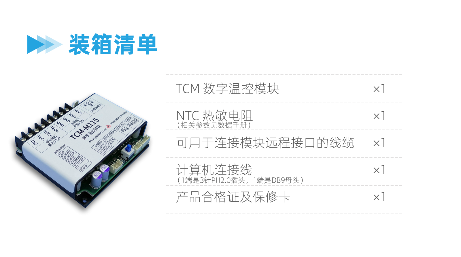标准版TCM系列温控器,可以用于驱动半导体制冷片TEC实现双向高精度温度控制,具有优异的恒温性能;